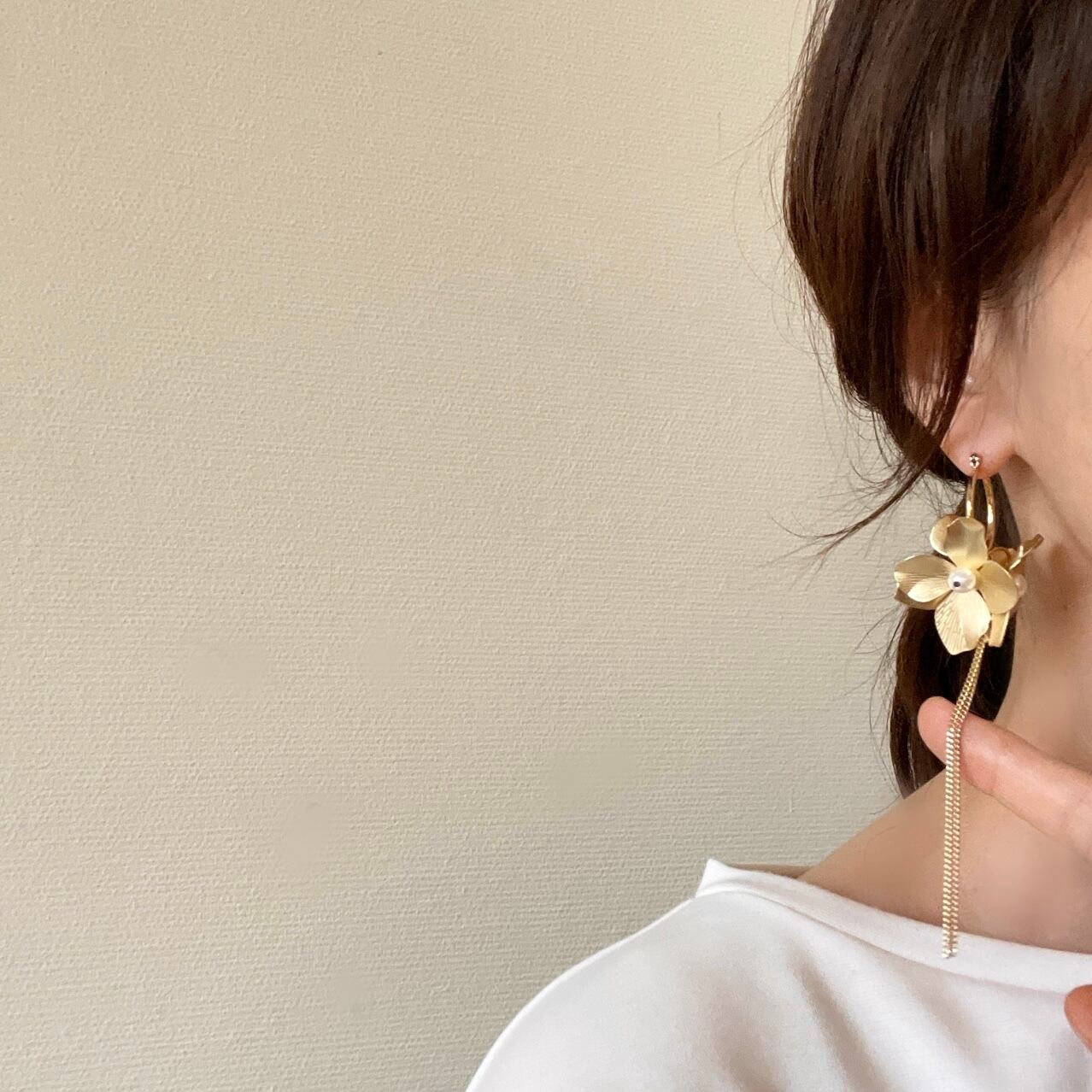 2way仕様のフラワーフープピアスです。