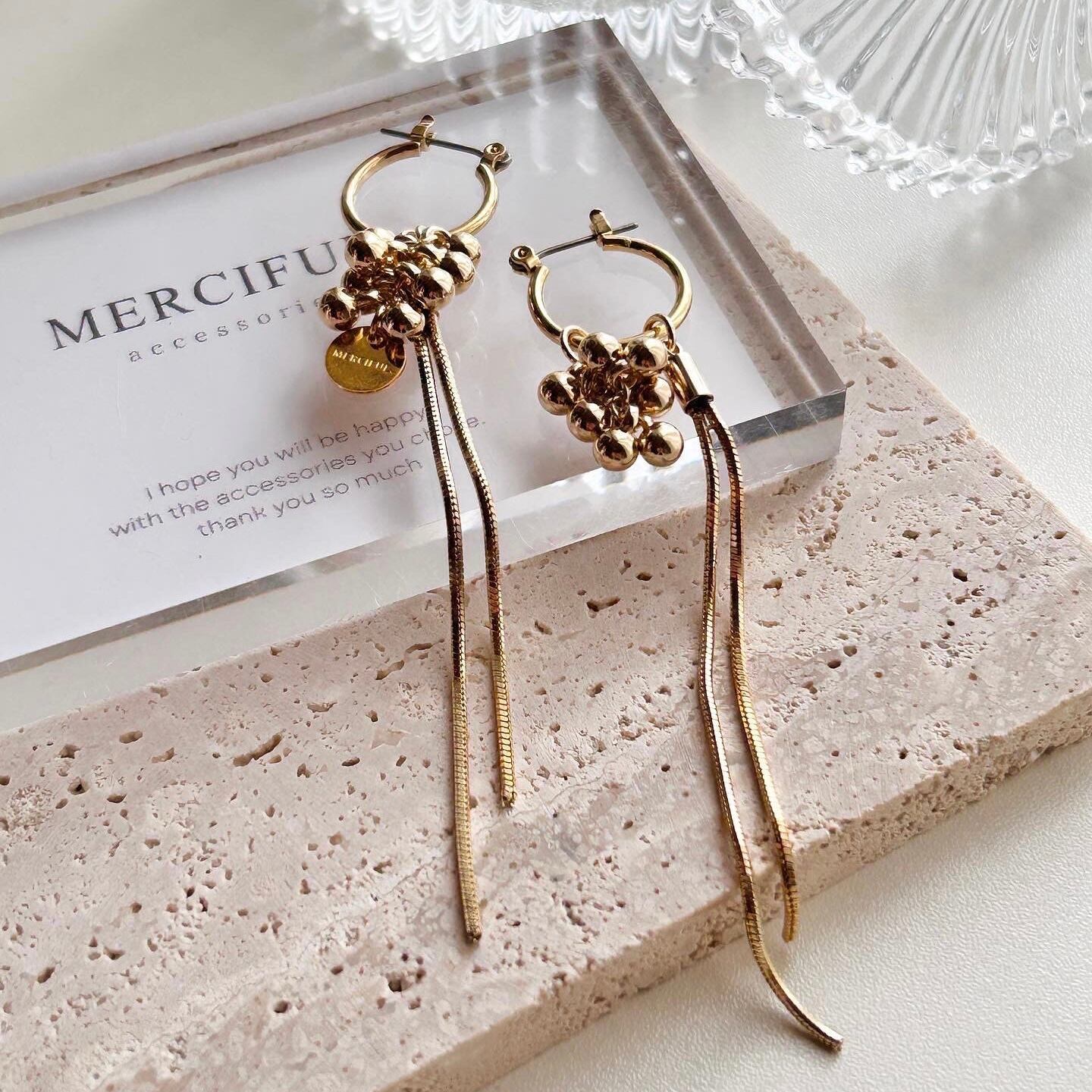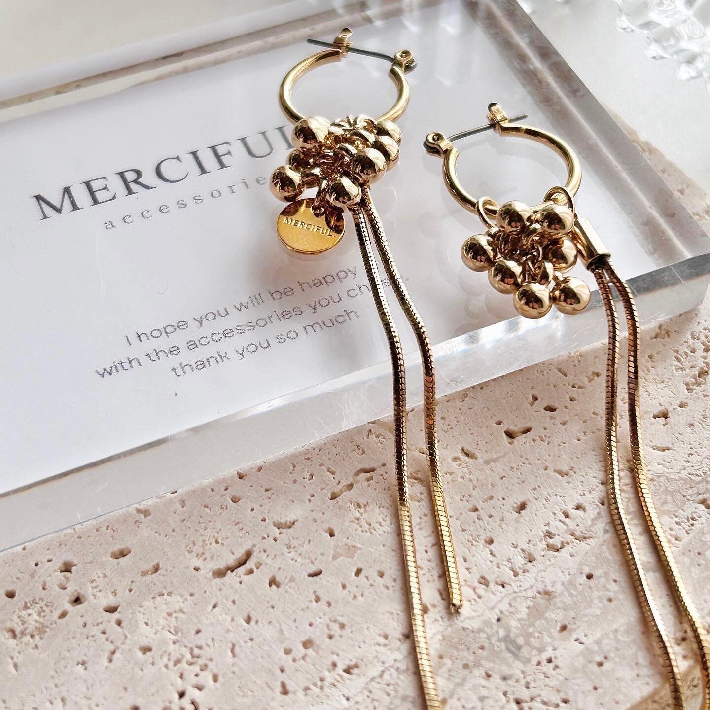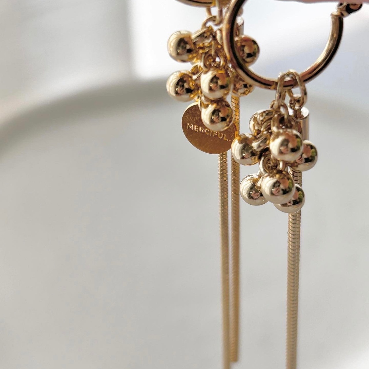 メタルボールととろみのあるチェーンが軽く揺れ、女性らしさを惹きたてます。